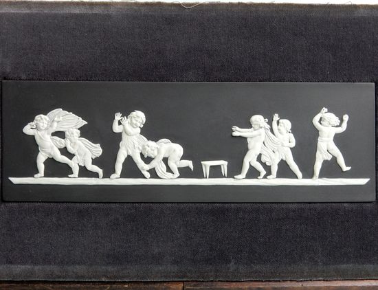 英国スタッフォードシャー、 ストーク=オン=トレントの ウエッジウッド工房で製作された、 ホワイト・ジャスパーウェアー のモンキー。 母猿が赤ん坊の猿を やさしく抱いている。 底の刻印は 「WEDGWOOD MADE IN ENGLAND」 |