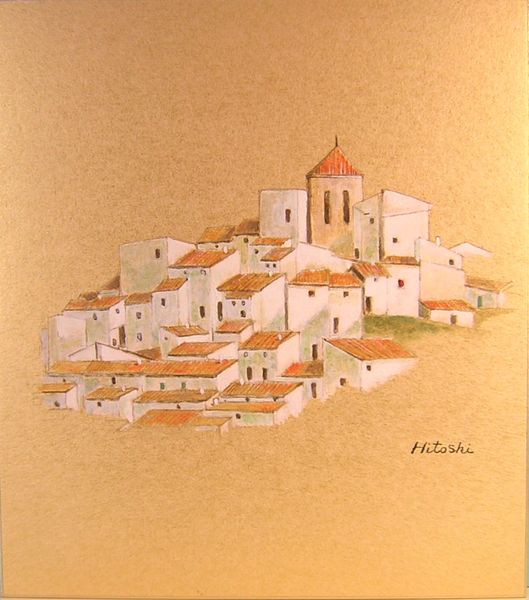 Hitoshi Nishikawa 西川 伍 色紙 アンダルシア 白い村 |