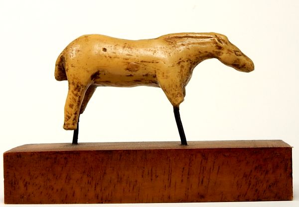 ●マンモスの牙から切り 出された馬の彫像 ●木製台の底に以下の 刻印有り。 Musse du Louvre/ reprodction interdite/ ATELIERS DE MOULAGE |